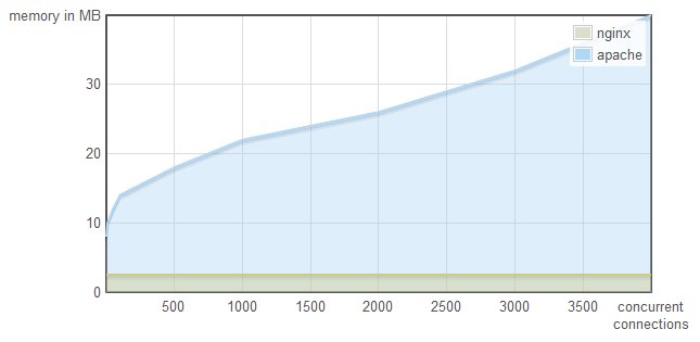 사용자 많아질 수 록 메모리 사용량은 Nginx보다 아파치가 더 압도적으로 높아짐 (Nginx 낮은 수준으로 일정하게 유지)
